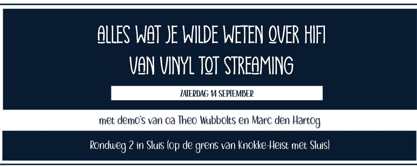 Op zaterdag 14 september aanstaande organiseren we opnieuw een demodag in onze showroom in Sluis. Je bent van harte welkom tussen 11u en 17u met al je vragen over hifi, van vinyl tot streaming.