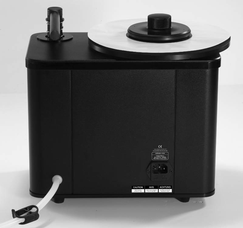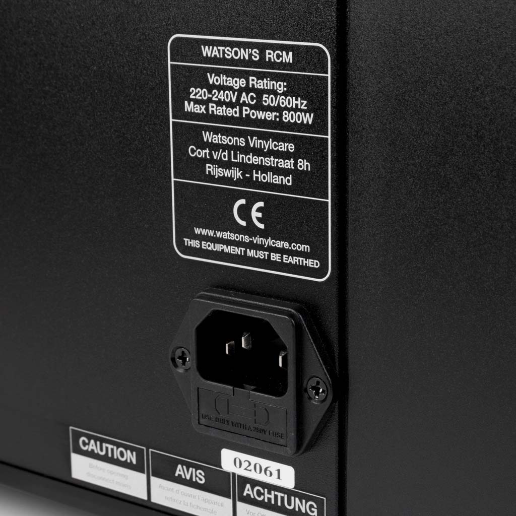 Watson’s Record Cleaning Machine 230V-50Hz biedt een stabiele en robuuste ondergrond om je waardevolle vinylcollectie op te reinigen. Naast een degelijke aluminium kast [305b x 185d x 300h] heeft hij een grote zuigkracht en een platenklem die de vinylplaat stevig op zijn plaats houdt, slippen tegengaat en voorkomt dat het label tijdens de reiniging in aanraking komt met de vloeistof. Leg de vinylplaat op het plateau, zet hem vast met de klem en laat hem draaien door de bovenste schakelaar om te zetten. Breng reinigingsvloeistof aan en verspreid die gelijkmatig over het oppervlak met de meegeleverde borstel. Zodra de vloeistof gelijkmatig verdeeld is, oefen je tijdens een aantal omwentelingen lichte druk uit op de plaat. Met de onderste schakelaar zet je de zuigarm in werking en wordt alle vloeistof en vuil binnen twee omwentelingen verwijderd.
